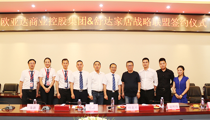 金秋9月,完美体育官方网址盟友团再添一员。9月5日,完美体育官方网址商业控股集团和舒达家纺战略联盟签约仪式在完美体育官方网址集团总部隆重举行。完美体育官方网址商业控股集团执行总裁张平波、副总裁赵红平、招商中心家具招商总监吴祥龙、湖北区域开店总监范波;舒达中国区总经理吴鄂、舒达中国区营销总经理朱波、舒达南区总监叶北平、舒达湖北区域经理赵听雨、舒达武汉经销商孟玥出席了此次签约仪式。