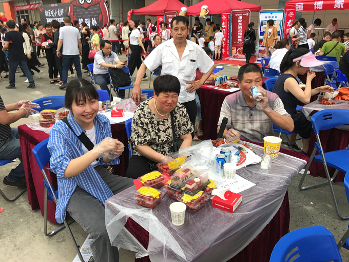 份量十足的小龙虾令人食指大动,领到小龙虾的观众一落座便大快朵颐。麻辣小龙虾、爽口冰啤酒,这场美食盛宴让现场观众称赞不已。